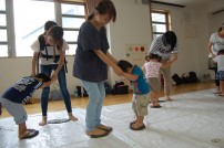 たくさんの陶芸用の土の粘土で、大人も子どもも全身を使って遊びました。