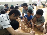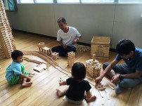4グループに分かれて、お父さん同志で相談しながら積んでいきました。