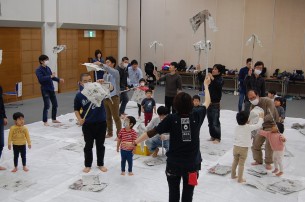 「つくってあそぶ」は、お父さんとカラダをいっぱい使って造形活動を楽しみます。