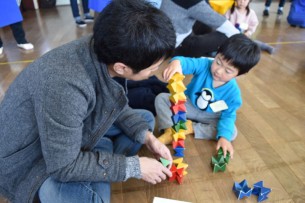デモンストレーションが終わると父子で自由につみきを楽しみます。