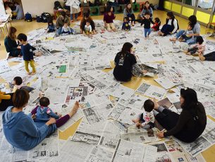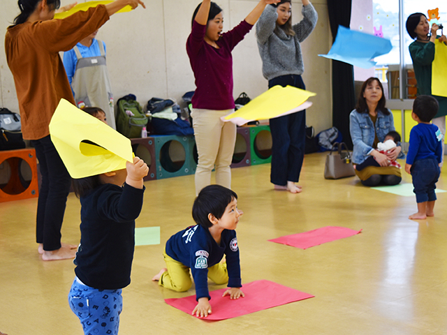 かみを振って音を聞いたり、ちぎったり、投げたり、くぐったり、しきつめたり、