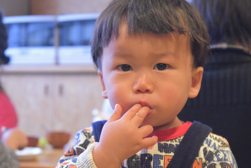 ほっぺについたおいしかった証拠がこの歳だからこそ。