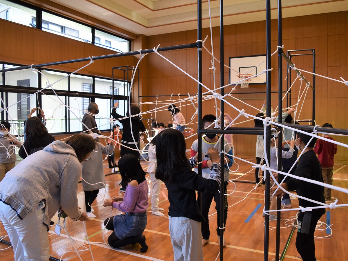 クモの巣のような不思議な空間をつくるあそびです。
