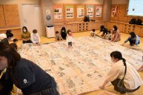 最後はなにやら大きな新聞紙。端をみんなでテープでとめて、中に風を送り込むと・・・