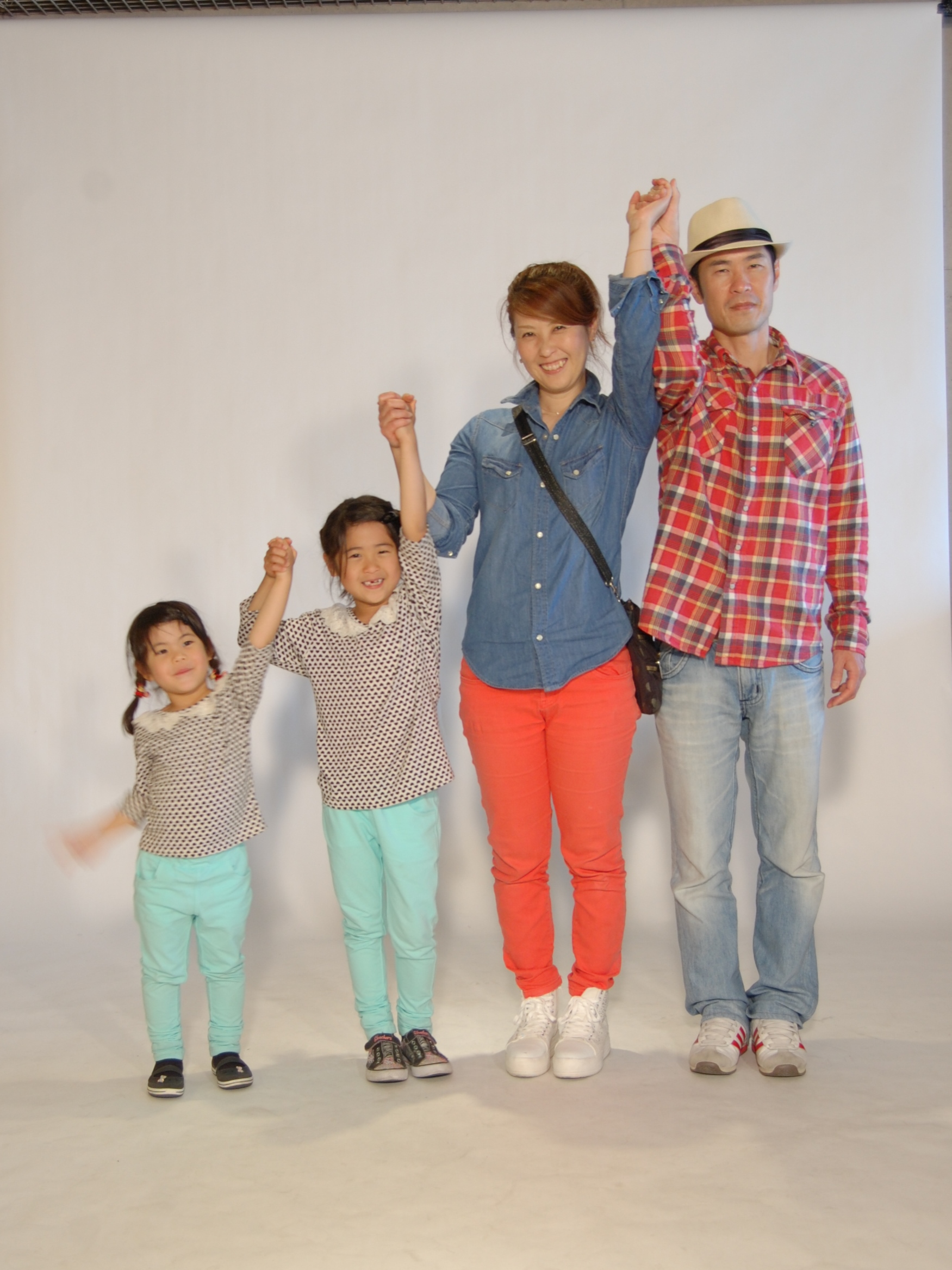 セルフタイマーで「家族のうれしい顔」の写真を撮影しました。