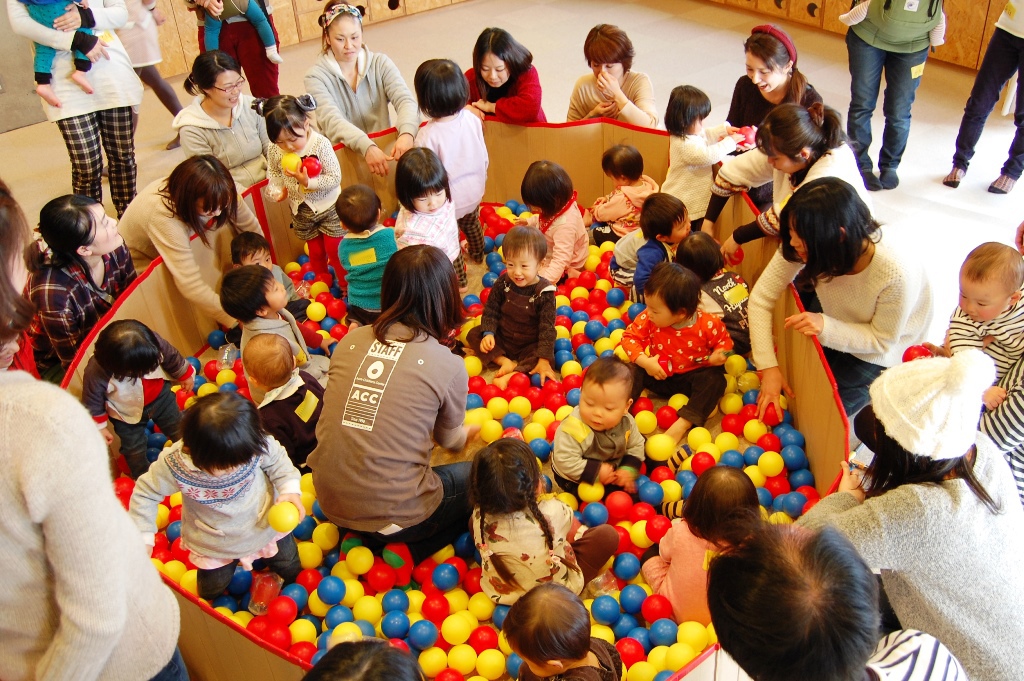 大きなワクのなかに、子どもたちとボールがいっぱいです。