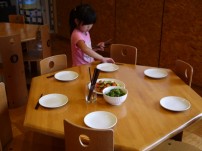 キッチンではじゃがいもを洗ったり、ミニトマトを切ったり、