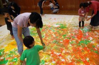 えのぐいっぱいになった大きな紙もみんなで楽しみました。
