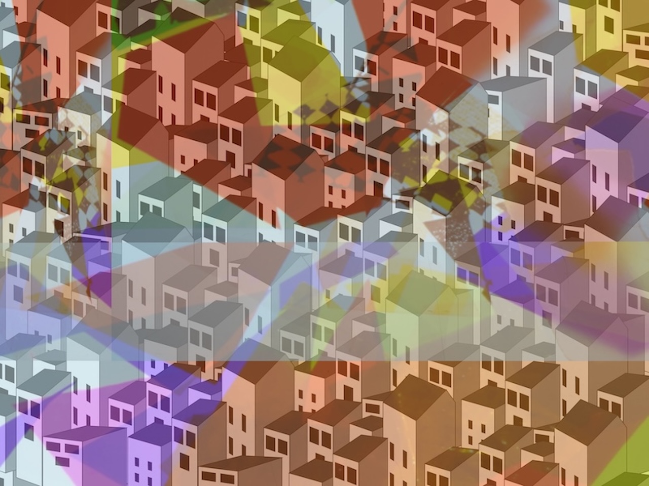 参加メンバーが力をあわせてつくった「しろいまち」の絵が、カラフルな世界にかわります