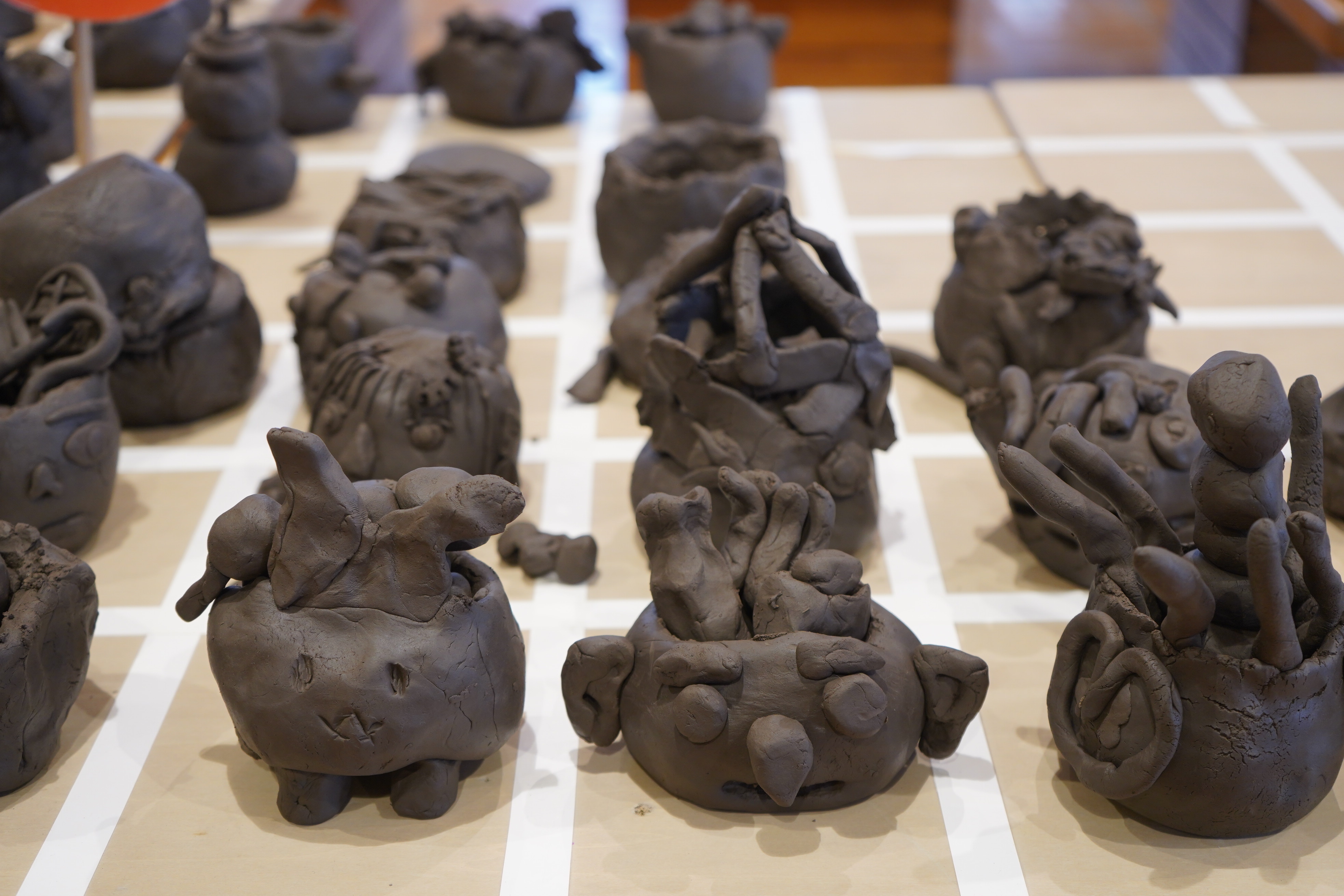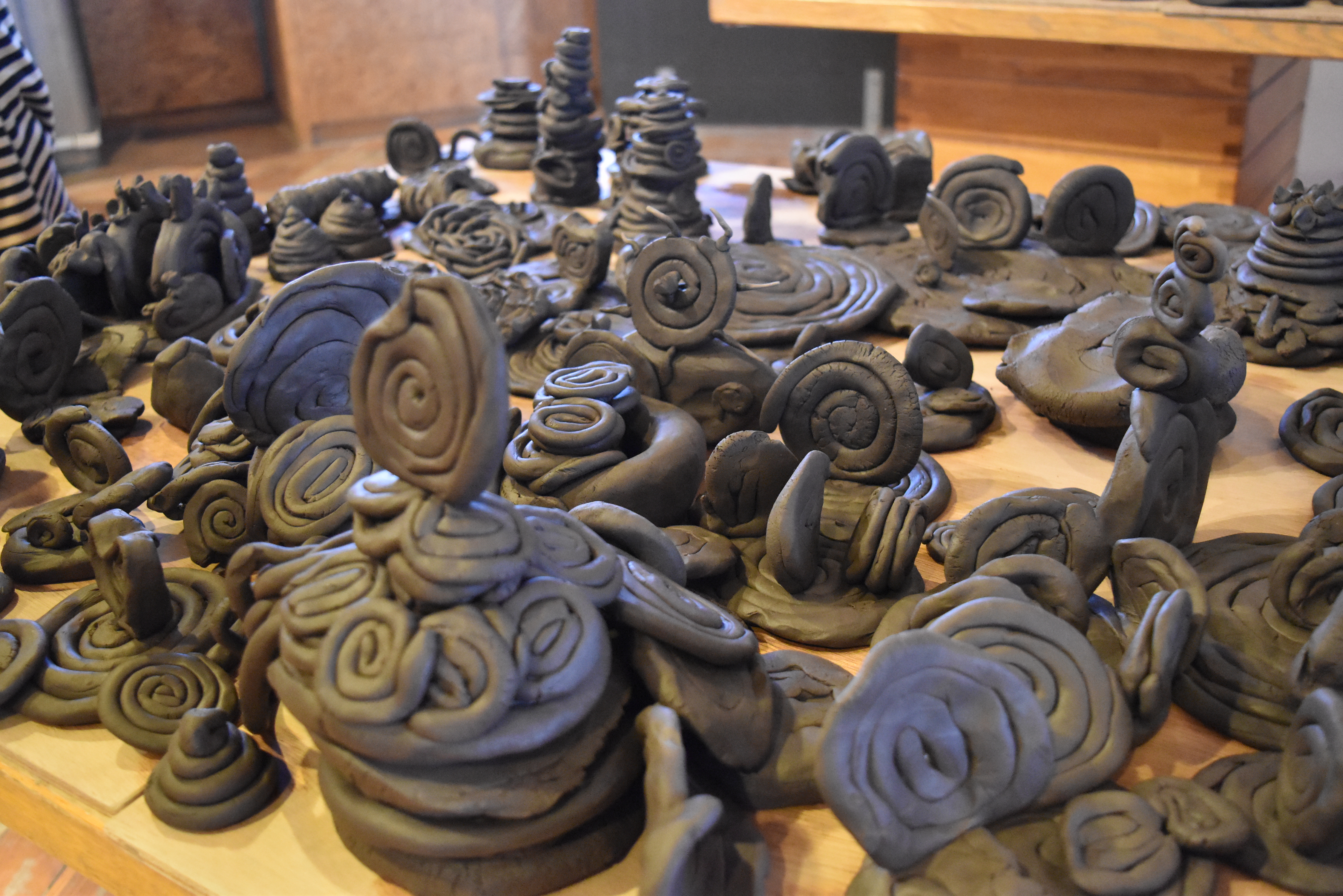 土の粘土で「うずまき」をたくさんつくって、不思議な世界をつくります。
