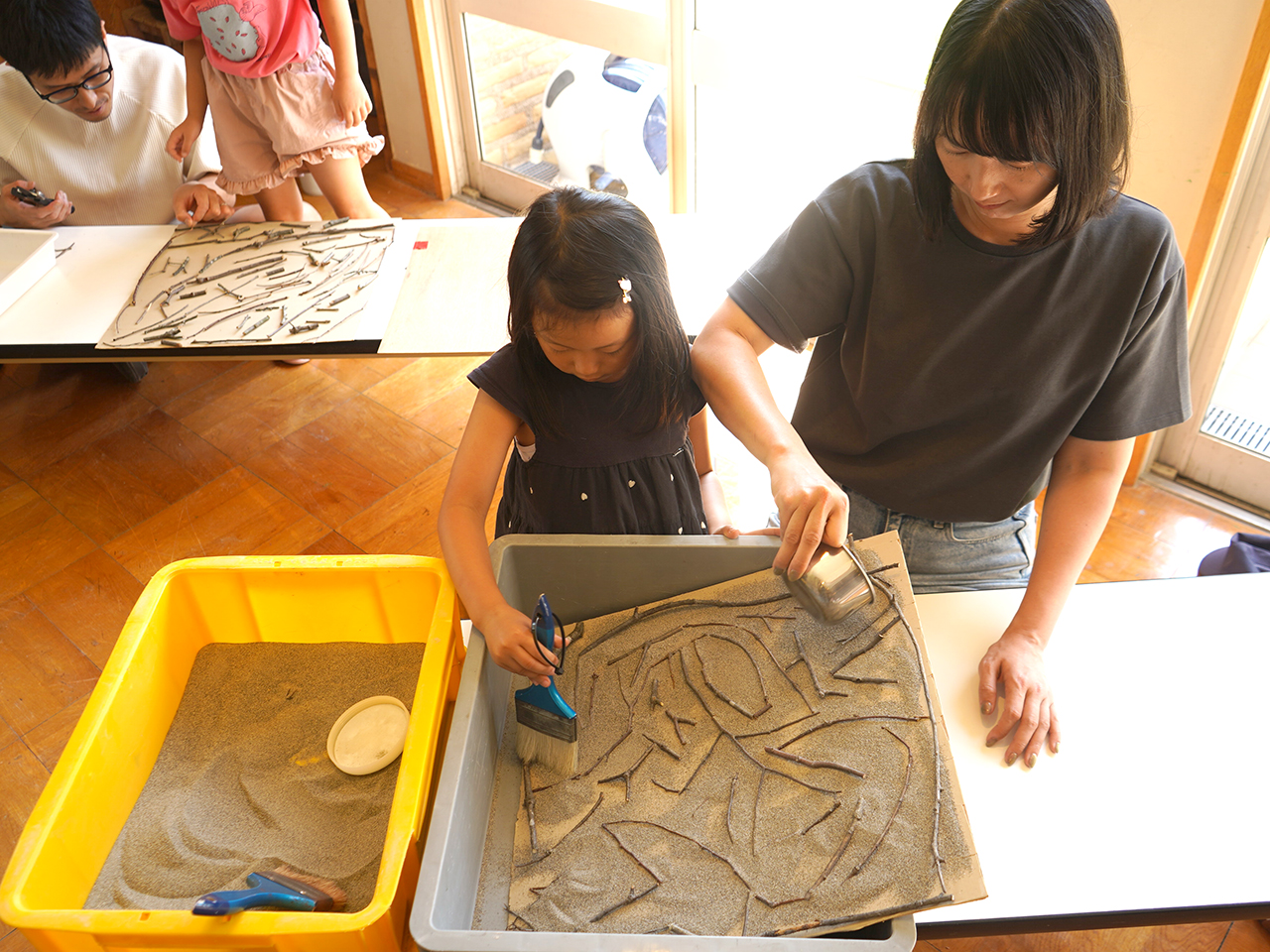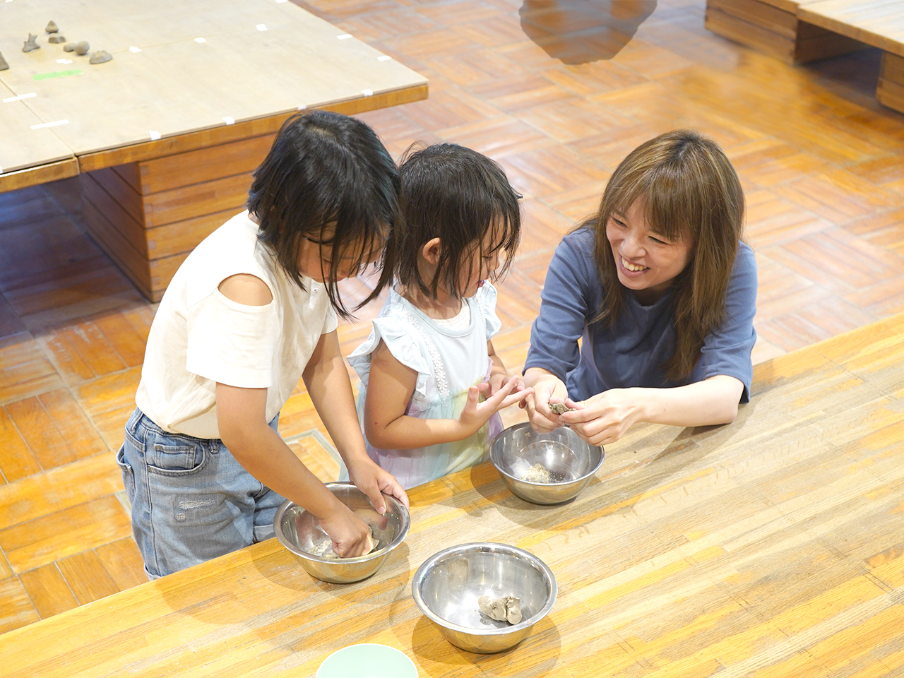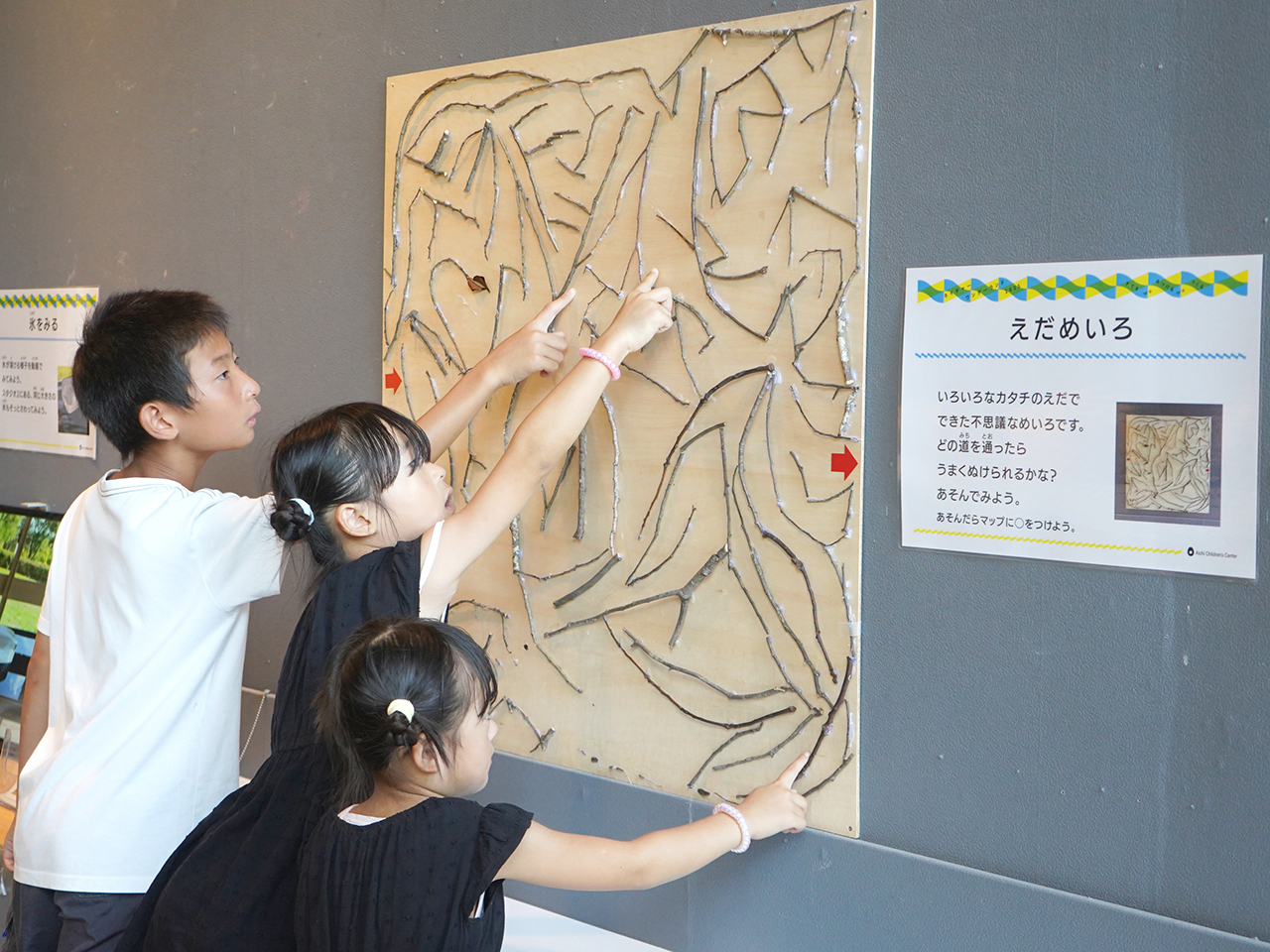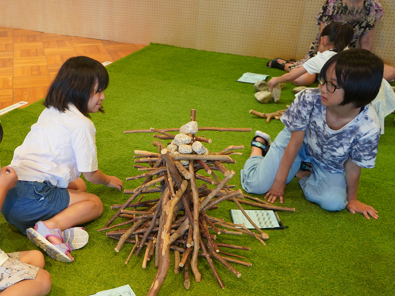 夏季特別企画ネイチャー・ワンダーランド2025 すてきwoみつけるwoつくる 終了しました 2025年7月12日更新 会期終了しました〔2025年7月19日(土)から2025年8月31日(日) まで〕 会期中の休館日なし 時間10:00-16:00(開館時間は9:00-17:00) 風にゆれる小枝が楽しそうに見えたことはありませんか?今回のネイチャーワンダーランドでは,「すてきwoみつけるwoつくる」と題して,ゆれる小枝のように,ふだんの暮らしでは気づかない「すてき」を,「つくる」ことを通して「みつけ」ます。 たのしみかたは,ワークショップと,インスタレーションとそれらを合わせたかたちです。ワークショップとは,みんなでなかよく「つくる」などする場やひとときです。インスタレーションとは,いろんなものを配置してその場所を「すてき」にみせるとりくみです。いろんなたのしみかたで「すてきwoみつけるwoつくる」ひとときを過ごして下さい。 (石松丈佳&名古屋工業大学環境とデザイン研究室 共同事業) ◎みんなであそぶプログラム 「しぜん」がテーマのあそびがいっぱい! まずは、あそびのスタジオ2で「すてきwoみつけるmap」をもっていろいろなあそびに出かけよう! とき: 会期中毎日 10:00-11:30 12:30-16:00 対象: 子どもと大人(未就学児までは大人と一緒) みえないカタチ 粘土で “自然のカタチ” をつくって、そっと飾ります。 場所:あそびのスタジオ1 スケルトンねる 身のまわりのものでできる不思議な影をつくります。 場所:あそびのスタジオ2、そとのひろば おとネット チャレンジタワーで音のつながりをみつけます。 場所:チャレンジタワー 枝と石 木の枝や石をならべたり、つんだりしてあそびます。 受付:あそびのスタジオ2 えほんのへや 「自然」をテーマに絵本をセレクトしました。 場所:えほんのへや