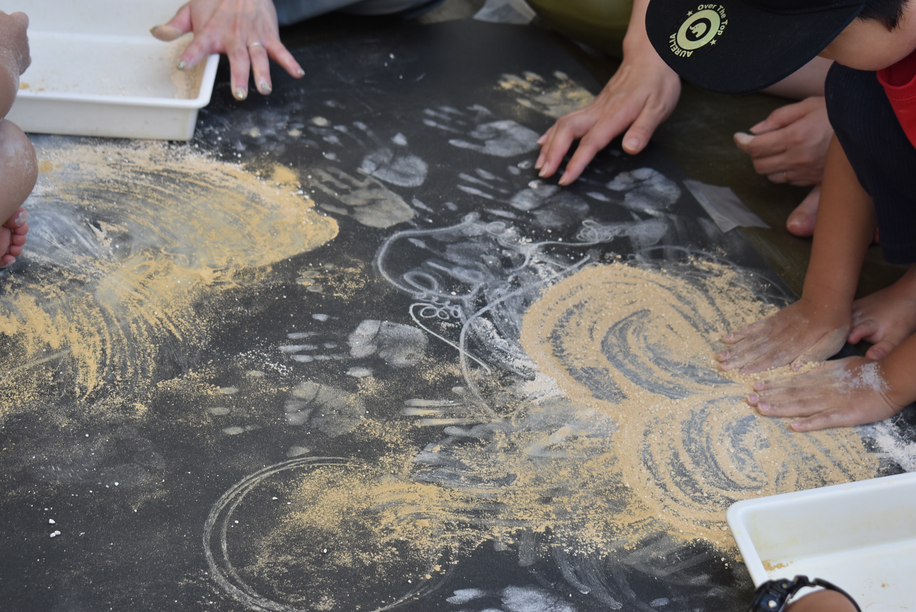 土粉でサラサラ、ドロドロの感触を楽しみます。