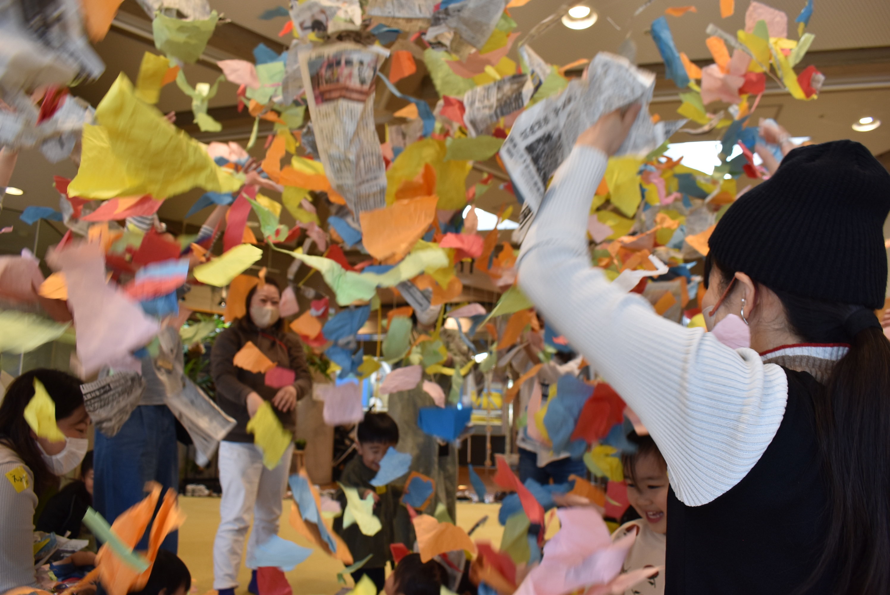 びりびり、くしゃくしゃ、紙の感触を楽しみます。